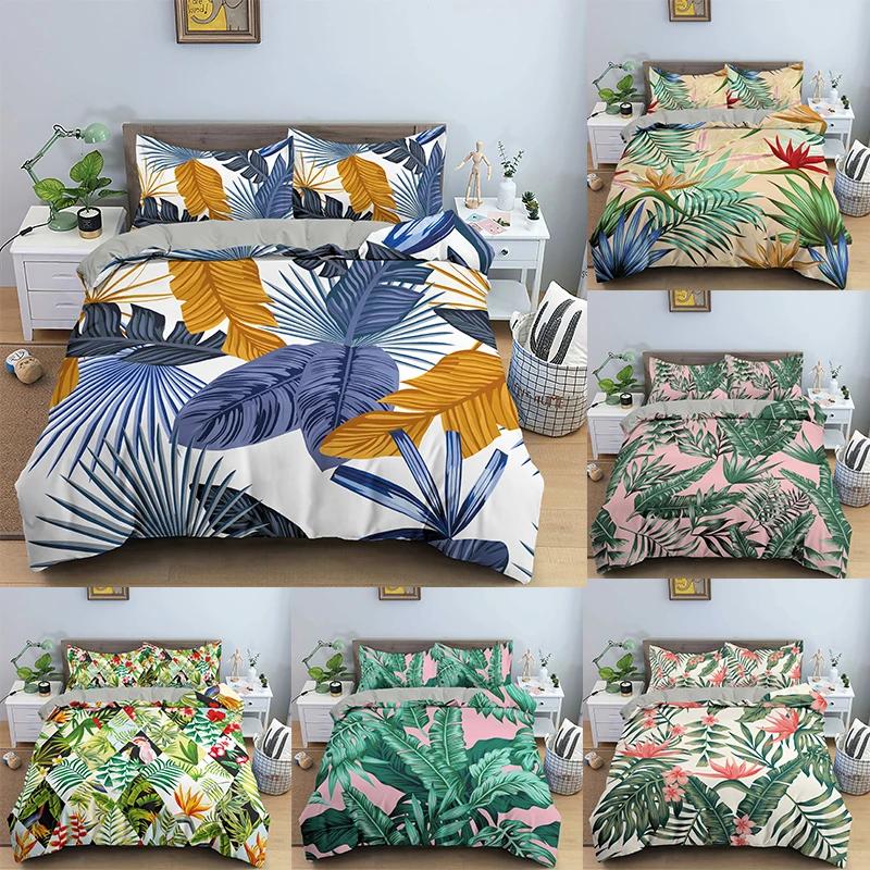 Comforter Leaves Bedding Set Single / Double King Size With Pillow Case 2 3 Piece