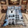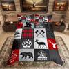 Comforter Homewish Rustic Deer Bear Woodland Animal Checkered Set Farmhouse Lodge Cabin Bedding Set