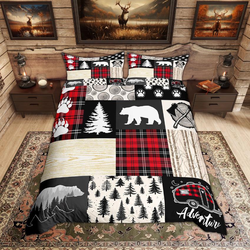 Comforter Homewish Rustic Deer Bear Woodland Animal Checkered Set Farmhouse Lodge Cabin Bedding Set — купить товар онлайн с бесплатной доставкой по всему миру!