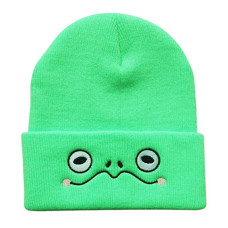 New men's and women's autumn and winter trendy cartoon beanie with sad frog eyes embroidery, warm knitted pullover hat — купить товар онлайн с бесплатной доставкой по всему миру!
