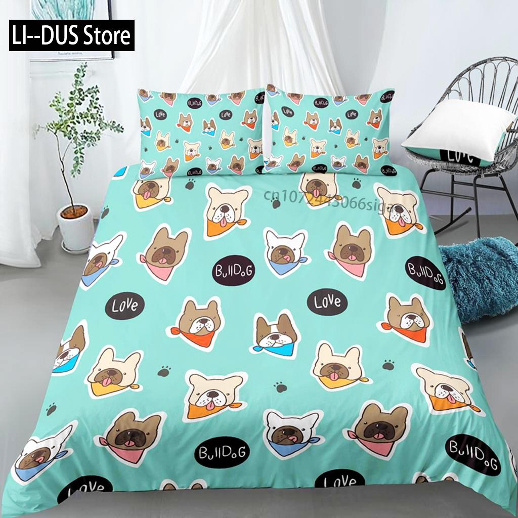 Comforter Cartoon Dog Bedding Sets Cute Pug Home Pet With Pillow Case For Family Home Bedroom Decor Women Children Kids Teen