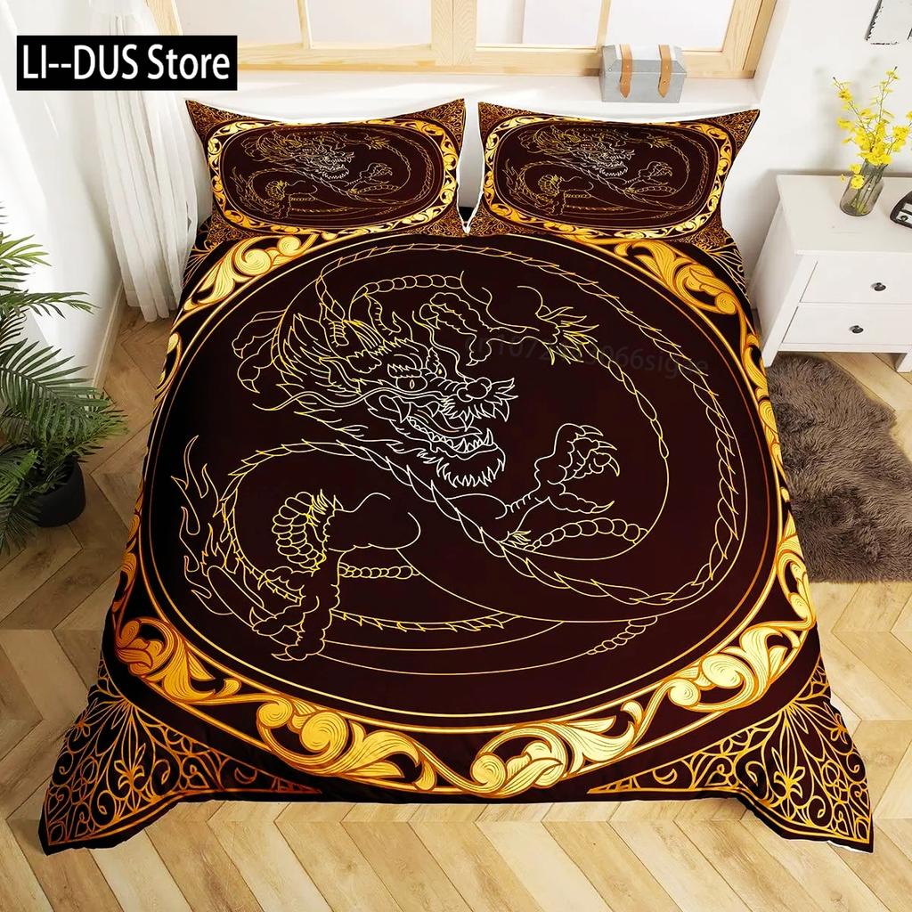 Comforter Dragon King Size Kids Mythical Animal Bedding Set Microfiber 2/3Pcs Set For Girls Women Black Gold Decor