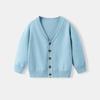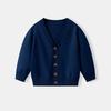 Детский вязаный кардиган с V-образным вырезом на весну и осень - Школьный стиль для мальчиков и девочек, хлопковая верхняя одежда