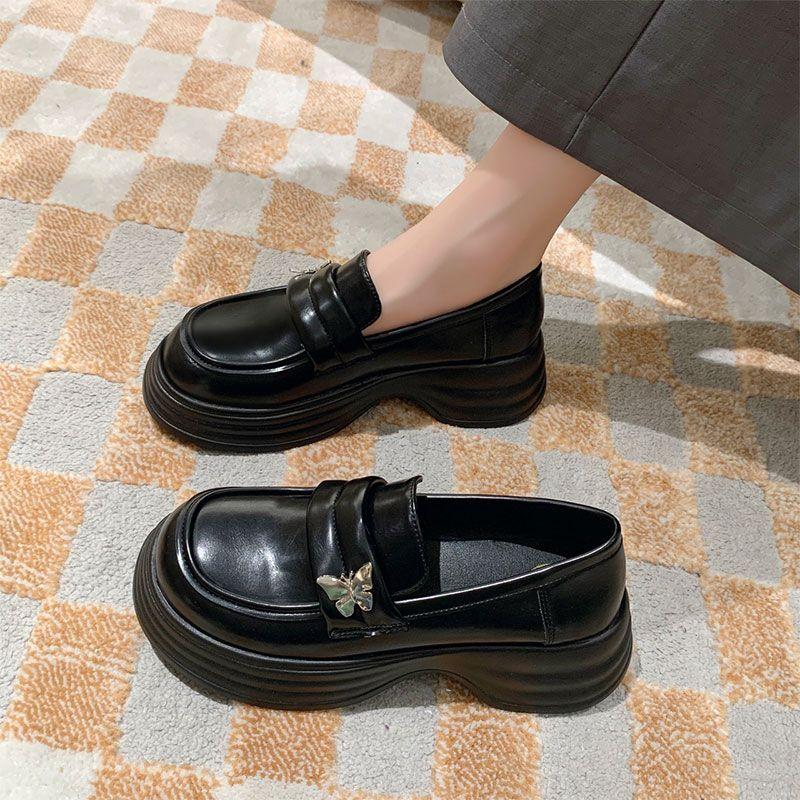 Женские туфли-лодочки на среднем каблуке с круглым носком на платформе кожаные повседневные лоферы обувь для женщин оптом Y2k в продаже корейский стиль 39