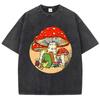 Cute Frog Kinting Mushroom Print Woman Washed T-Shirt Cotton Summer T Shirt Soft Loose Streetwear Y2K Short Sleeves — купить товар онлайн с бесплатной доставкой по всему миру!