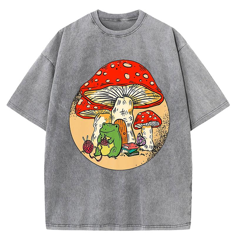 Милая Лягушка Вязание Грибной Принт Женская Стиранная Футболка Хлопок Летняя Футболка Мягкая Свободная Уличная Одежда Y2K Короткие Рукава