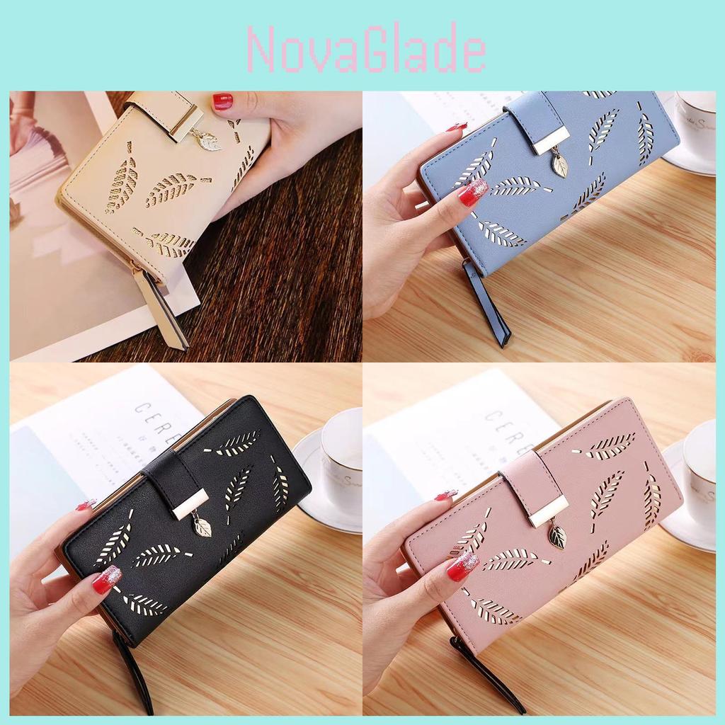 2023 Новый женский кошелек с полым узором в виде листа из ПУ-кожи на молнии, длинный держатель для карт