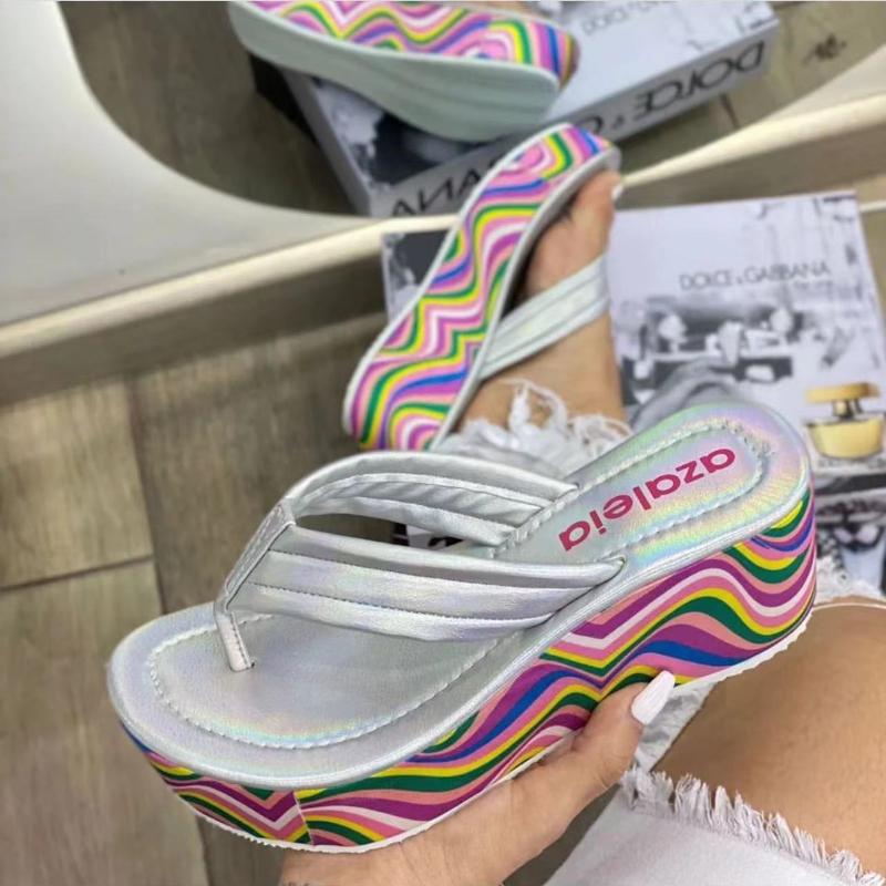 Женские вьетнамки на танкетке 2026 Летняя мода Цветная Толстая подошва Шлепанцы Обувь Женские Роскошные Сандалии