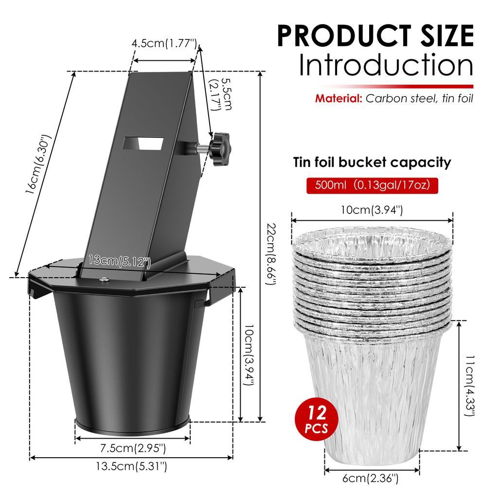Grease Bucket with Lid and 12-Pack Liners Carbon Steel Leak Proof Drip Bucket Smoker Bucket for Traeger, Pit Boss, Z Grills, Rec