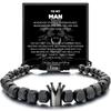 Men's Crown Bracelet Stainless Steel Snap Braided Adjustable Bracelet Inspiring Gift Pineapple Bead Crown Bracelet