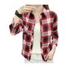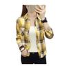 Представляем нашу высококачественную женскую рубашку, изготовленную из полиэстера премиум-класса, обеспечивающего легкость и воздухопроницаемость.. Эта стильная рубашка с модным клетчатым принтом, лацканами, однобортными пуговицами и длинными рукавами создает модный и универсальный образ..