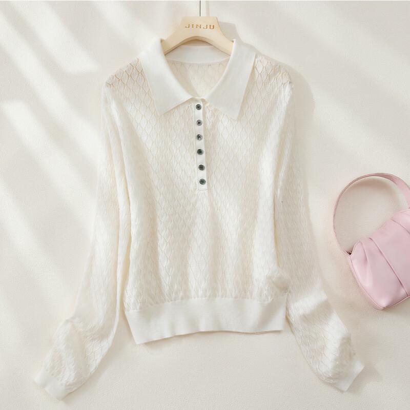 Женская трикотажная рубашка-поло с узором аргайл из шелковой смеси Jinjuan