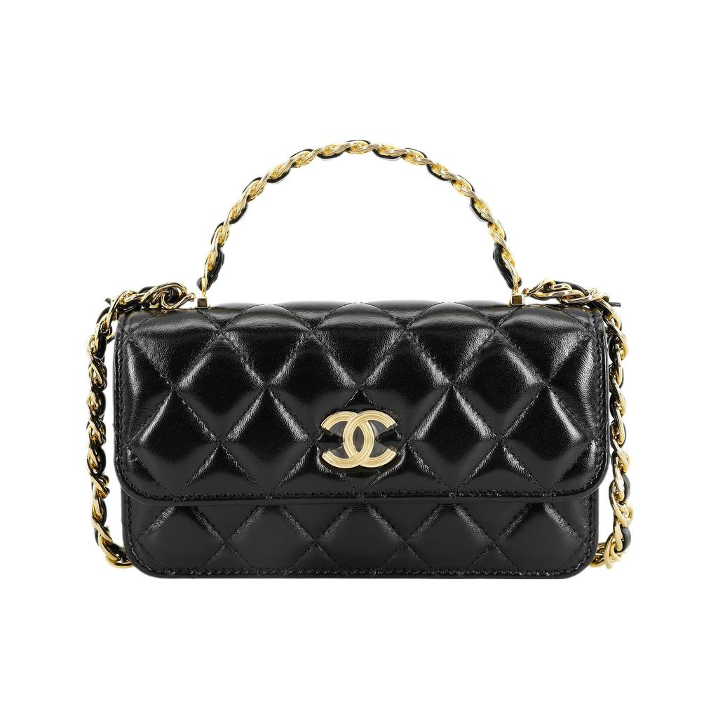 Chanel Classic Flap CF 23A Vintage Handle Diamond Quilted Polished Lambskin Embossed Buckle Leather Chain Women's Regular Shoulder Crossbody Bag Black