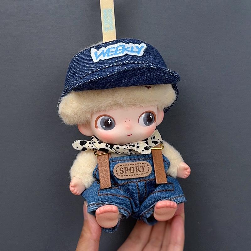 In Stock: Cute Denim Cap & Overalls Set for Dimo Newborn Diary Doll - Plush Toy Blind Box Clothes — купить товар онлайн с бесплатной доставкой по всему миру!