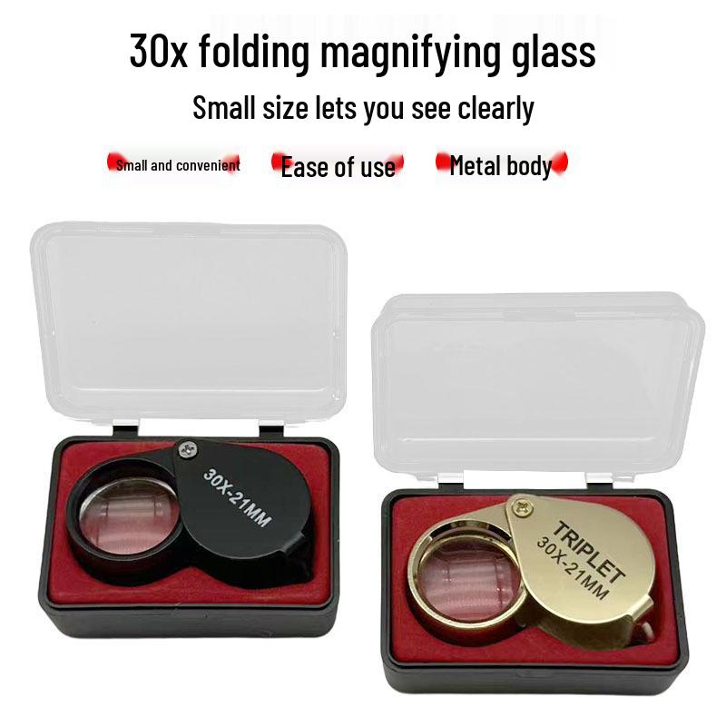 30x21mm High Magnification All-Metal Folding Magnifying Glass for Jewelry, Jadeite, Coins, and Antiques