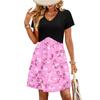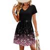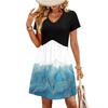 Женское модное платье с принтом, V-образным вырезом, короткими рукавами, свободного кроя, повседневное, для пляжного отдыха