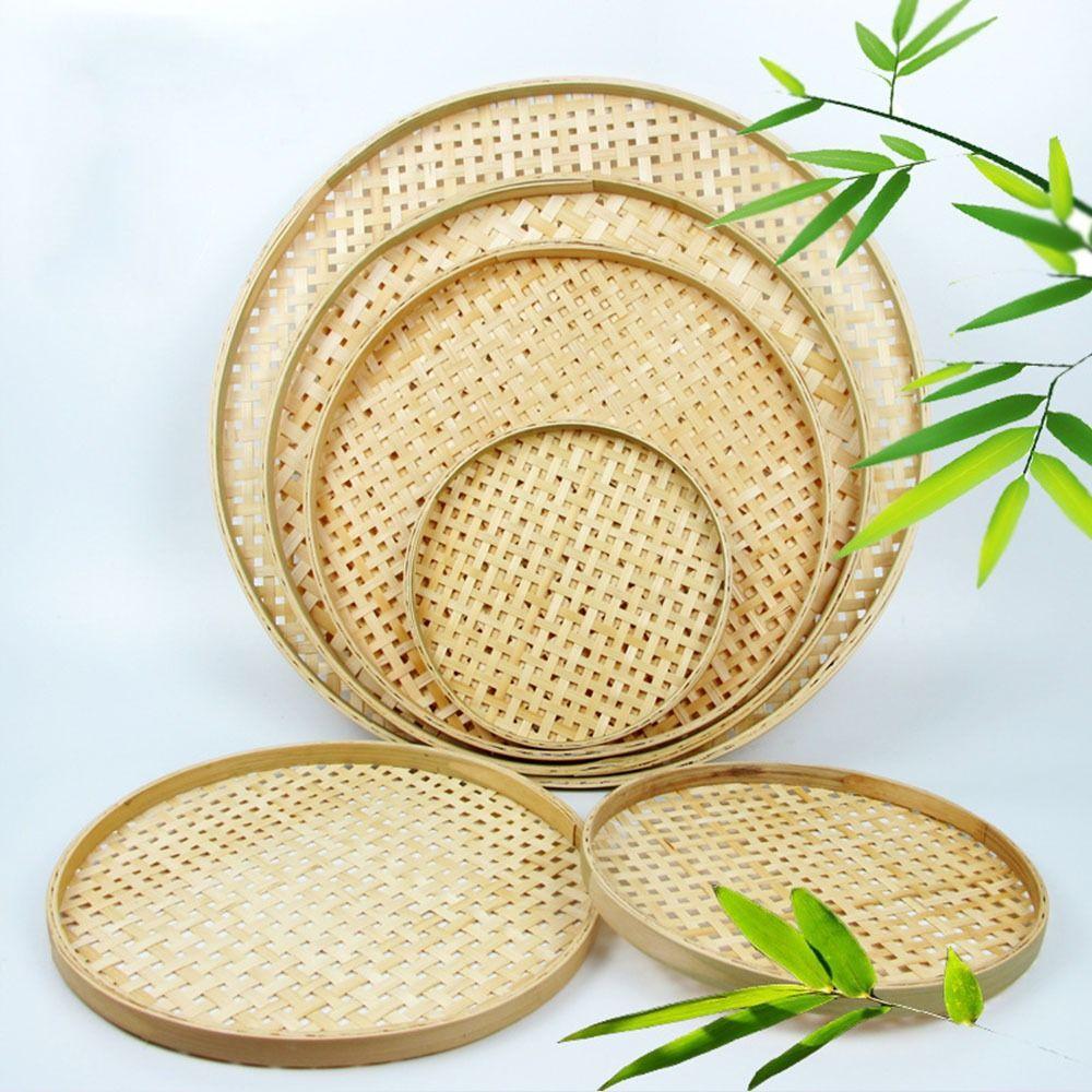 Woven Bamboo Products Fried Food Dim Sum Fruit Bamboo Sieve Food Tray Storage Basket Dustpan