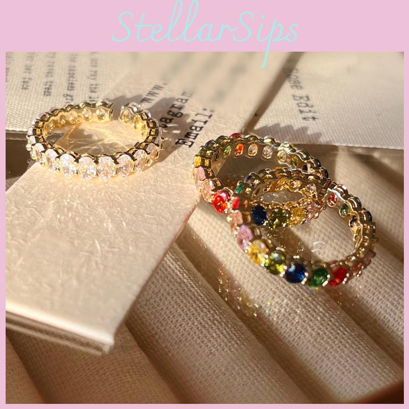 Elegant Fashionable Open Adjustable Ring For Women Featuring Vibrant Colorful Diamonds