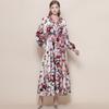 Весенние Винтажные Цветочные Макси-Платья для Женщин Подиумные Скрещенный V-образный Вырез Длинный Рукав-Фонарик Пояса Пляжное Праздничное Платье Бохо Халат