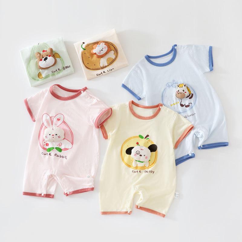 Summer Baby Romper - Newborn Short Sleeve, Round Neck Cartoon Bodysuit