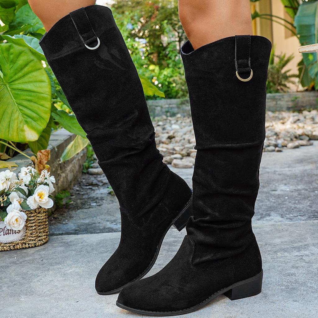 Новые черные ботинки женские черные нюд искусственная замша флок высокие до колена женские на низком каблуке Осень Зима Платье Botas Mujer