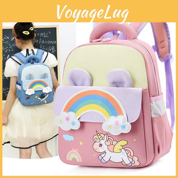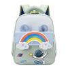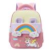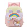 This lightweight children's backpack features a soft, durable Oxford cloth construction. Designed with ergonomic curved shoulder straps, it supports gentle spine protection and load reduction for young users. Ideal for kindergarten and school use, it displays playful animal patterns with colorful stitching elements. Easy to maintain, simply wipe clean with a damp cloth to preserve its vibrant appearance.