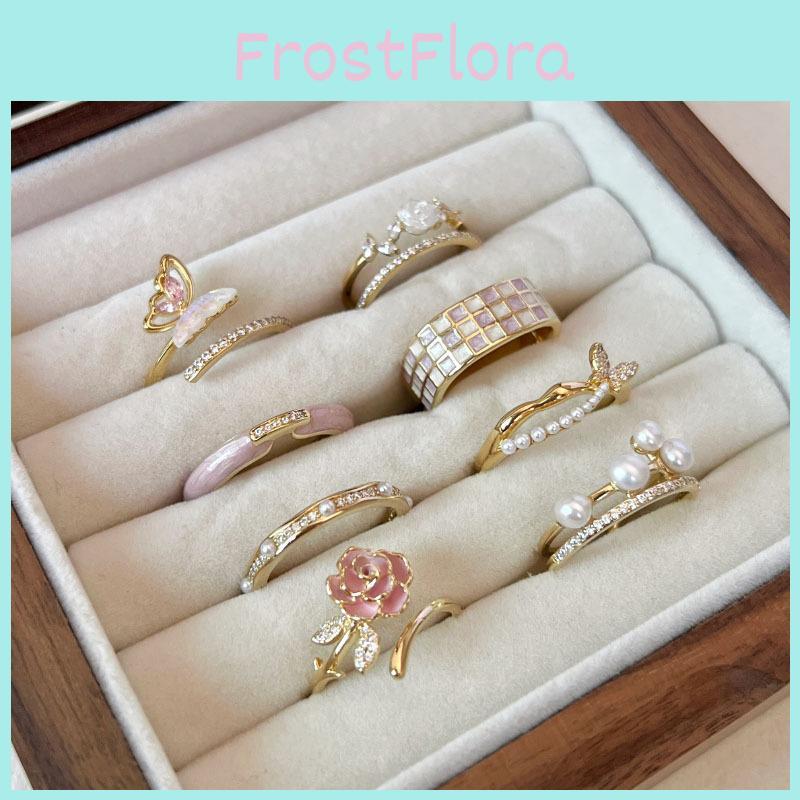 Unique Design: This ring features a contemporary flower design complemented by a stunning butterfly and shimmering pearl details, making it a standout accessory for any outfit.