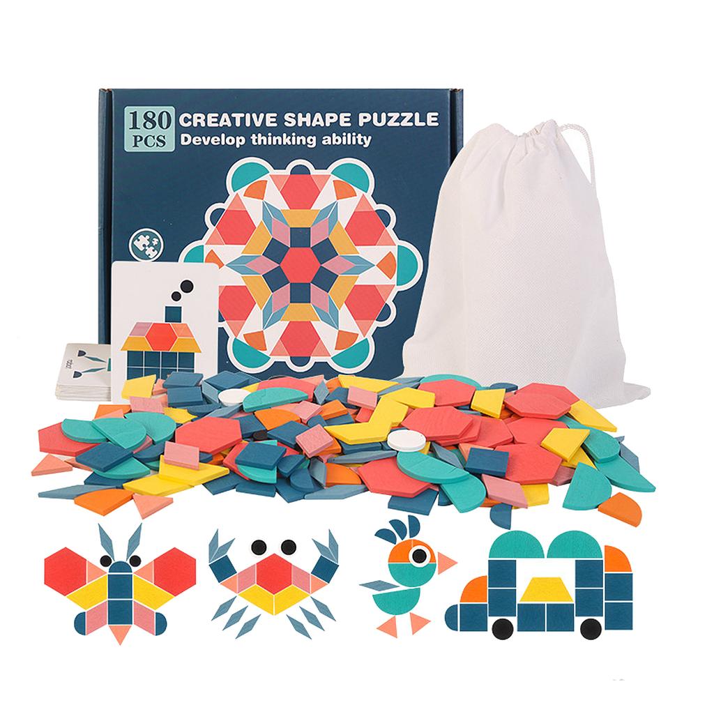 Kids Puzzle Toy, Wooden Pattern Blocks Set Geometric Shape Puzzle Educational Jigsaw Puzzle Toy — купить товар онлайн с бесплатной доставкой по всему миру!