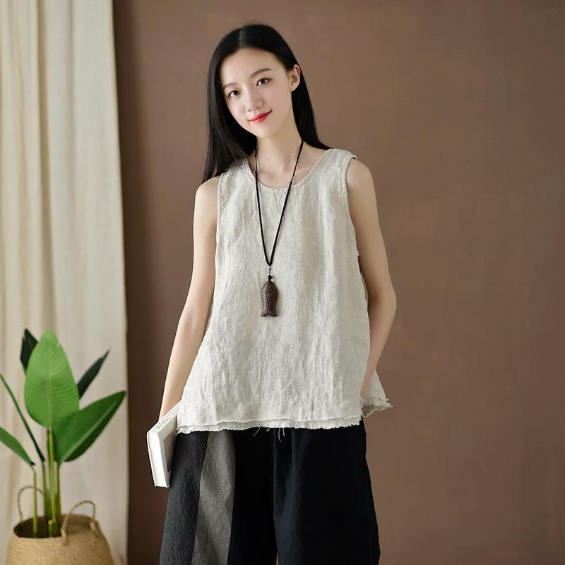 Весна и лето новинка хлопково-льняная женская одежда литературный и ретро льняной топ на бретелях с необработанным краем женский нижний маленький жилет