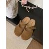 Новые стильные женские низкие сандалии женские кожаные бархатные туфли на низком каблуке замшевые резиновые ажурные флоковые базовые бархатные туфли низкие сандалии