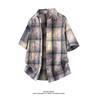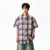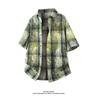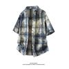 Мужская летняя рубашка с коротким рукавом в стиле тай-дай и color block - Свободный повседневный топ в гонконгском стиле