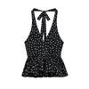 Y2k Halter Ruffle Vest Top Polka Dot Women Camisole Comfortable Sleeveless Crop Top Female