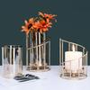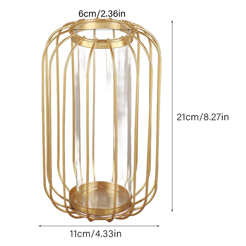Nordic Lantern Shaped Wrought Iron Vase Glass Iron Tabletop Flower Vase( Gold)