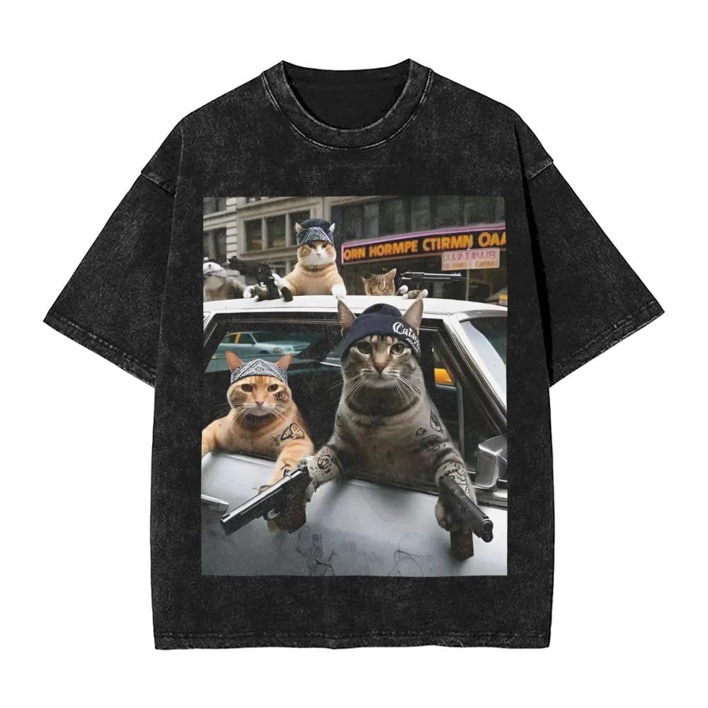 Мужские забавные футболки с графикой мема "Банда котов", топы, пляжные, винтажные, с короткими рукавами, футболка с круглым вырезом, популярный узор, футболка, дропшиппинг