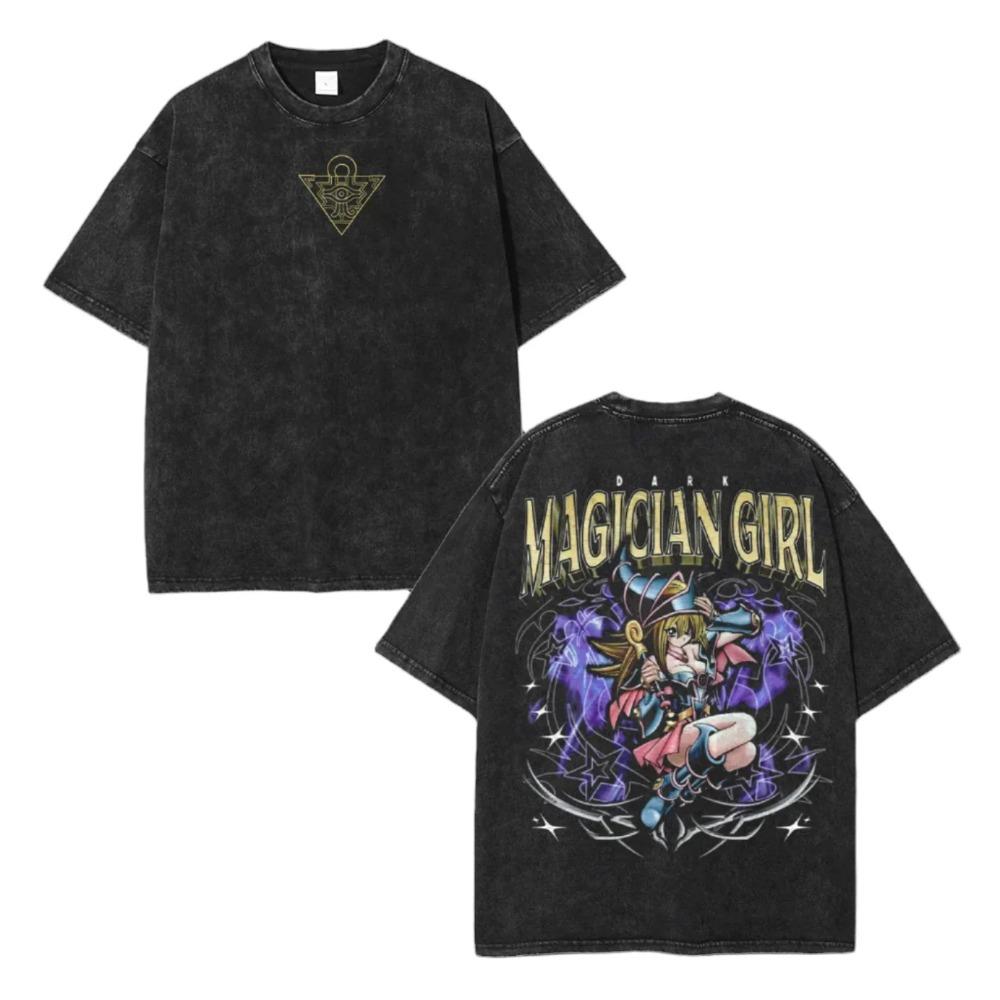 Yu-Gi-Oh! Dark Magician Girl Vintage Acid Wash Double-Sided Graphic Oversized Black T-Shirt | Anime/TCG Fan Streetwear Merch Tee — купить товар онлайн с бесплатной доставкой по всему миру!