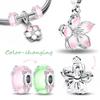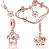 copper Pink Romantic Cherry Blossom Charm Bead Charms Bead Charms Flowers Rings Compatible With Pandora Bracelets Bead for Women Fine Jewellery Gift