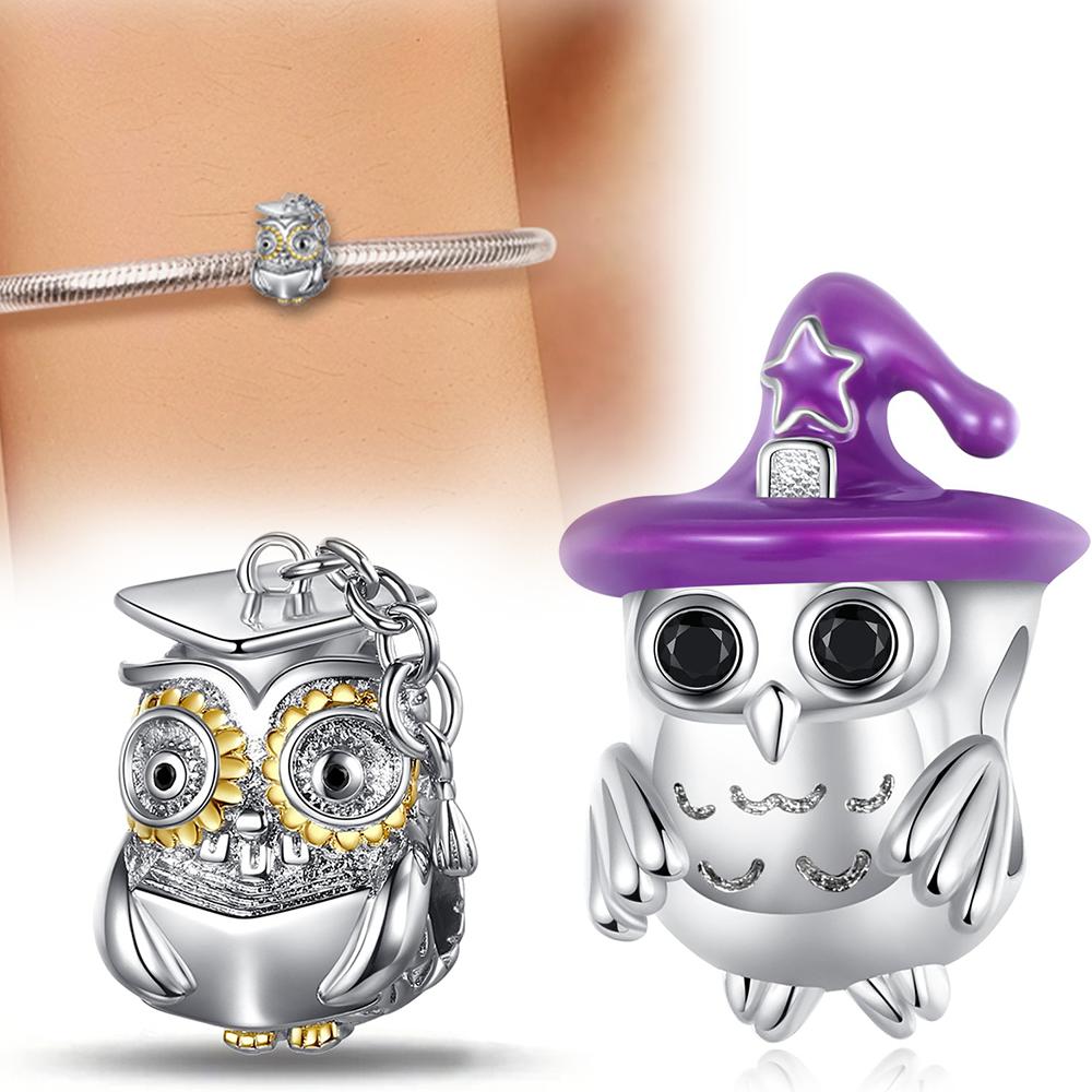Шарм-бусины Шармы Серебро Милая Сова Подарок на Выпускной Медь Покрытая Идеально Для Шарм-бусин Шармы Медь Покрытая Аутентичные Браслеты для Изготовления Украшений