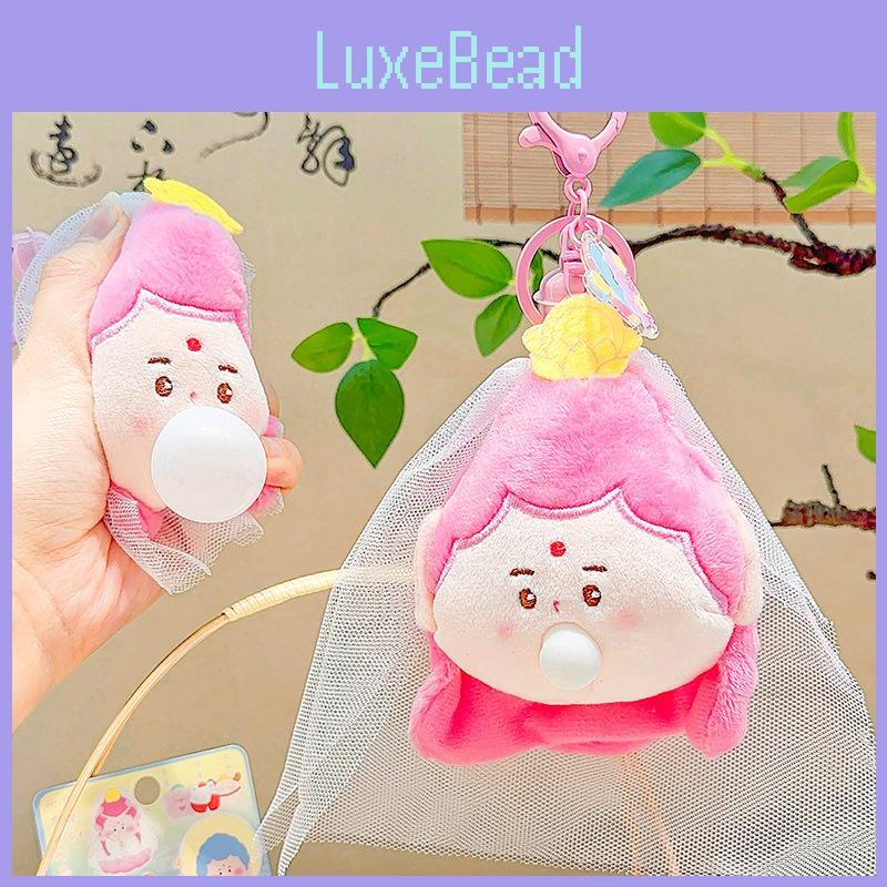Adorable Plush Buddha And Guanyin Bubble Blowing Keychain Cute Cartoon Accessory