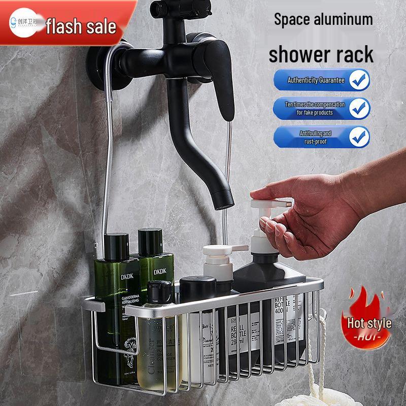 Punch-Free Bathroom Shelf & Shower Head Hanging Basket for Shampoo and Shower Gel Storage — купить товар онлайн с бесплатной доставкой по всему миру!