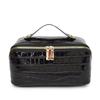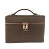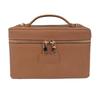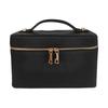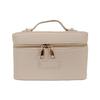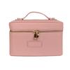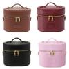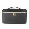 Portable Cross-Grain Leather Cosmetic Bag with Gold Hardware - Makeup and Skincare Travel Organizer