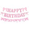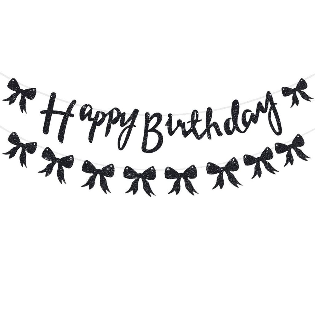 Pink & Black Glitter Bow Birthday Banner Decoration — купить товар онлайн с бесплатной доставкой по всему миру!