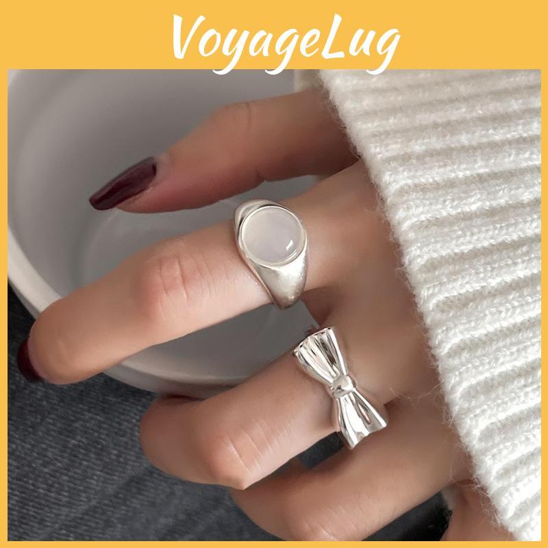 Шикарное геометрическое кольцо-узел-бабочка из белого агата для женщин с регулируемым размером
