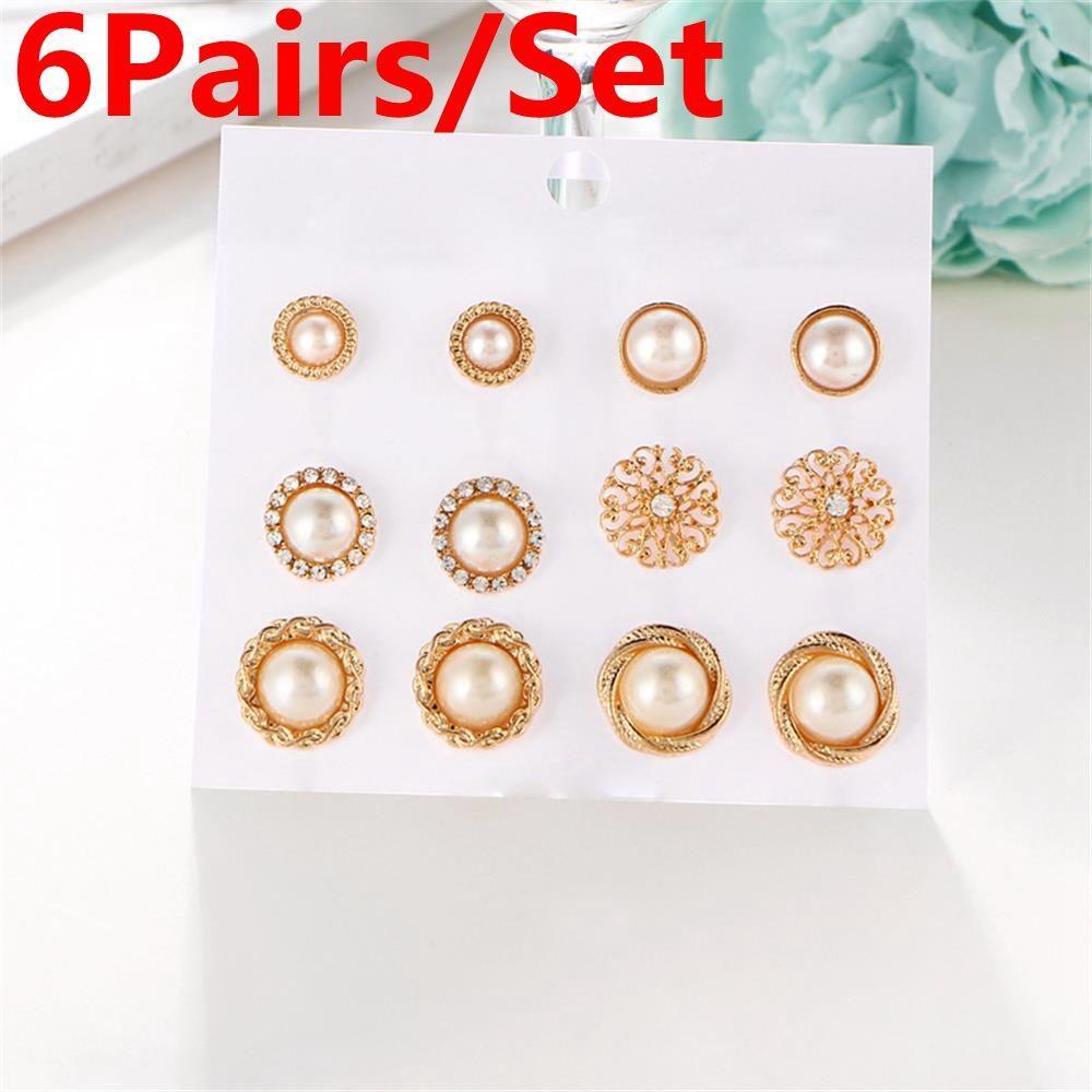 6Pairs/Set Women Round Hoop Jewelry Zircon Pearl Ear Stud Embroidery Rose Drop Dangle Earrings — купить товар онлайн с бесплатной доставкой по всему миру!