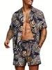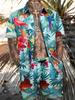 Мужской Новый Гавайский Комплект: Рубашка с коротким рукавом и Шорты Летний Повседневный для Путешествий Пляжный Повседневный Комплект с Шортами на Шнурке Принт Джунгли