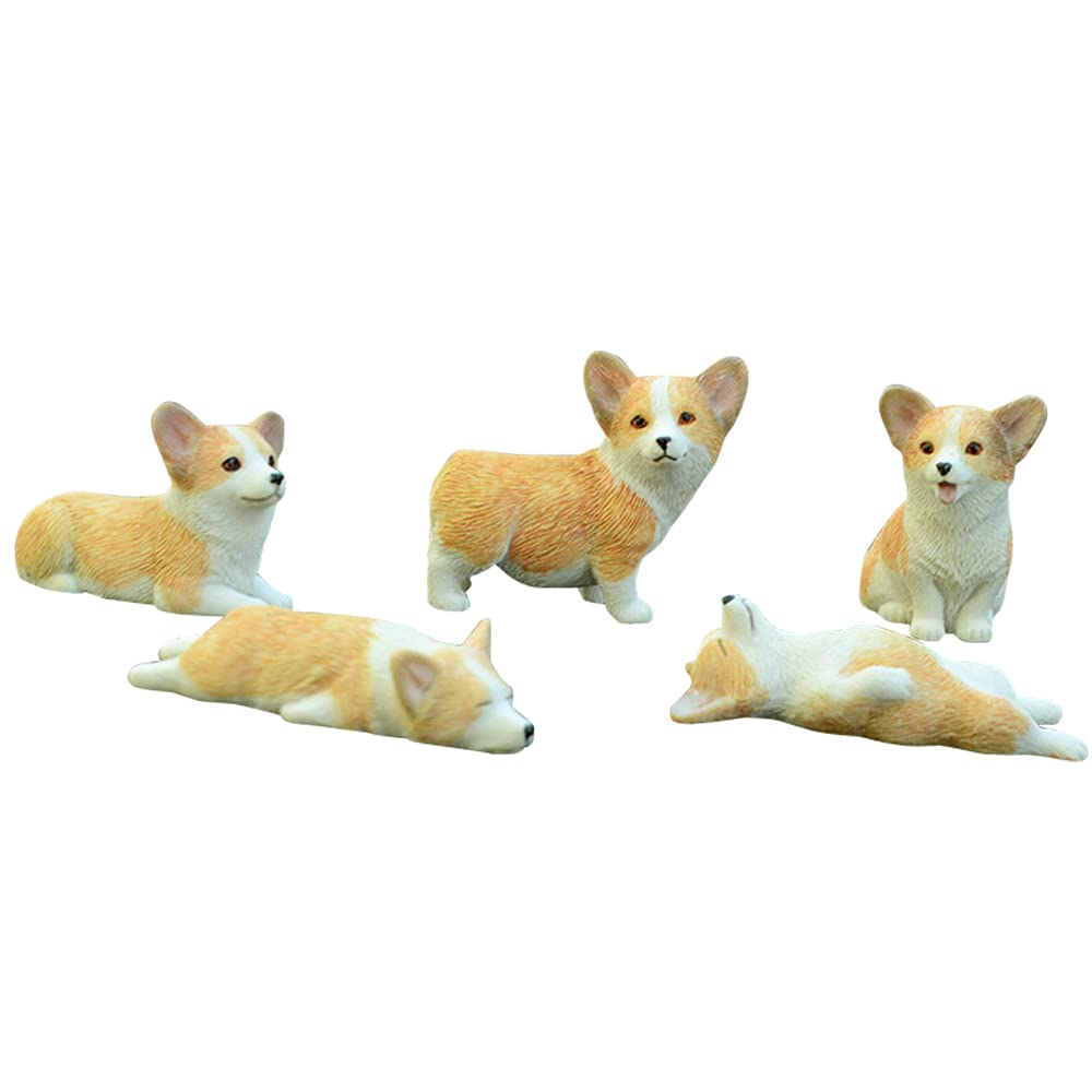 moin moin Figurine Ornament - Sleeping Corgi Puppies Assortment 5-Piece Set + Non-Slip Mat/Mini Small Sleeping/Sitting Puppies for Car Decoration Disp