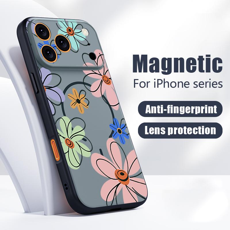 Чехол с мультяшным цветочным узором Для iPhone 17 Pro Max Магнитный Для Magsafe Гибридный Тонкий Матовый Чехол Для iPhone 16 15 14 13 Pro Max Ромашки Цветы Персика