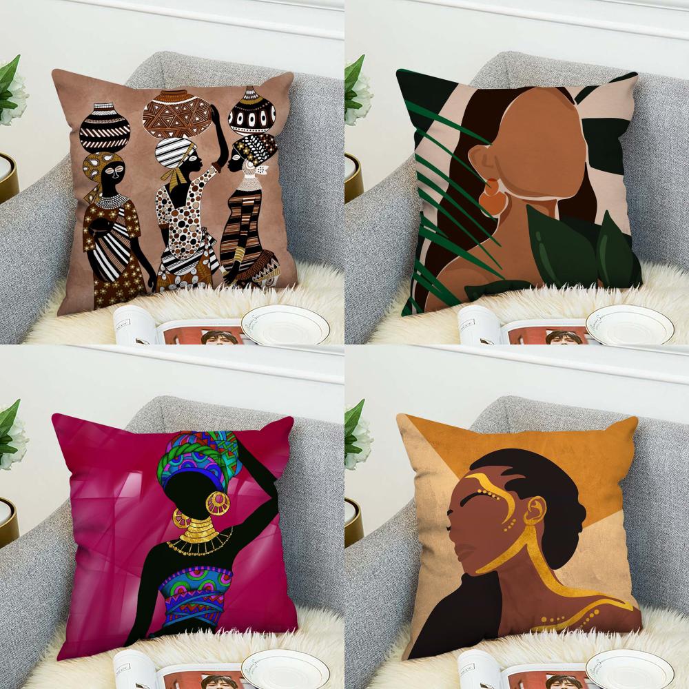Африканская Женщина Наволочка Для Автомобильного Дивана Декоративная Домашняя Двусторонняя Печать Плюшевая Квадратная Декоративная Подушка Чехол