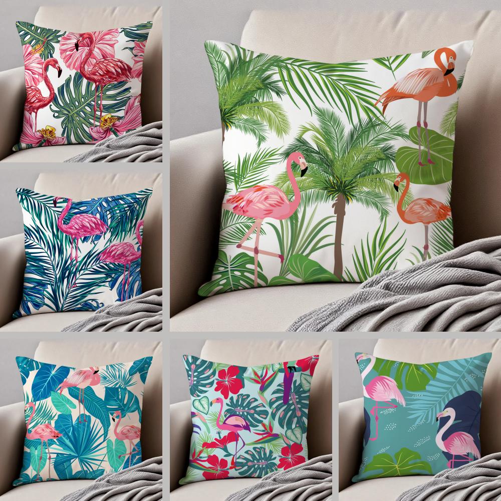 Forest Flamingo Palm Leaves Plant Pattern Art Cushion Cover Throw Pillow Cover Hidden Button Durable Polyester Chair Cushion