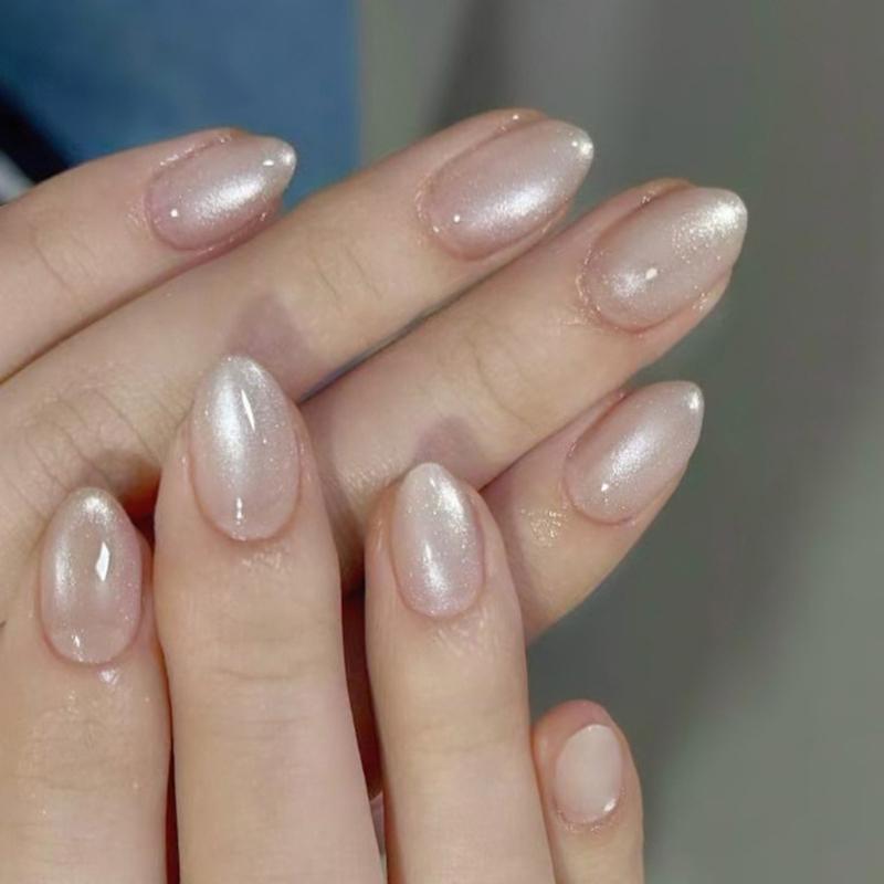 30 шт. Глиттер Кошачий глаз Накладные ногти Миндаль Накладной ноготь Полное покрытие Клей на ноготь Акриловый Искусственный ноготь Наклейки для ногтей