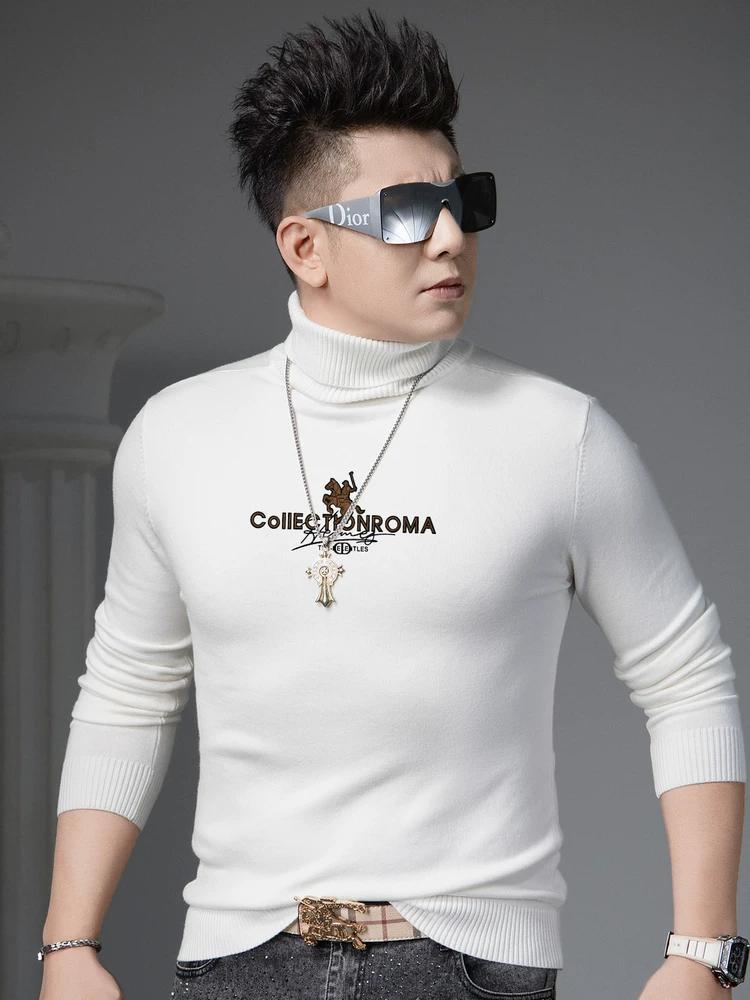 Ozhouzhan 2025 Autumn and Winter Warm Turtleneck sweater Men's Trendy Print Knitted Bottoming Shirt Inner wear Sweater